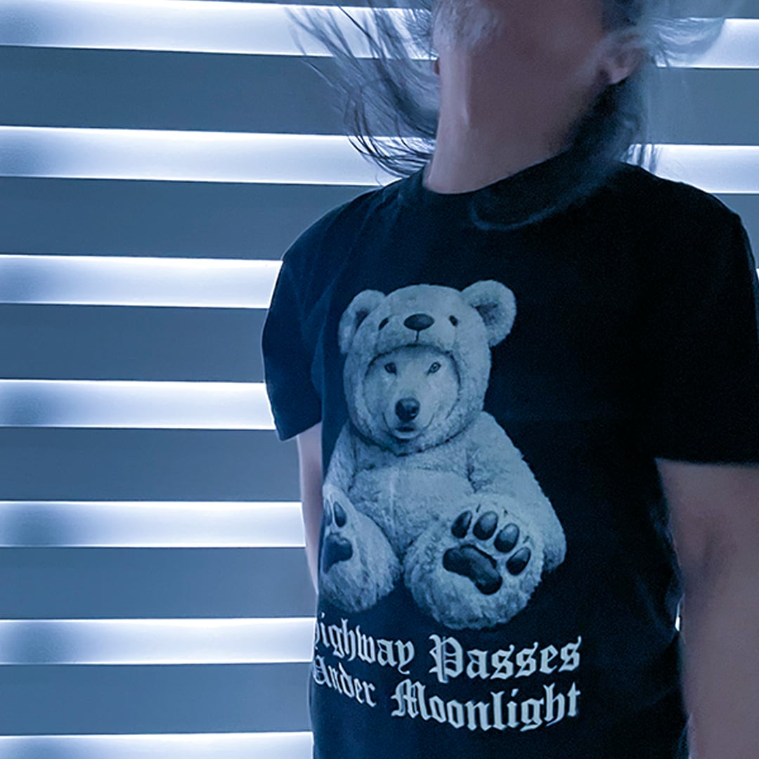A 5.6oz heavy-weight 100% cotton tee featuring a lifelike teddy bear.