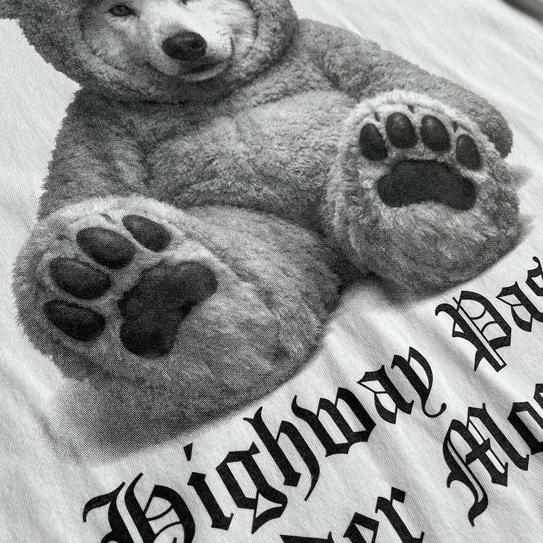 A 5.6oz heavy-weight 100% cotton tee featuring a lifelike teddy bear.
